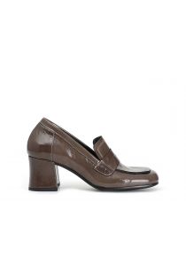 Women's patent leather loafer with ornamental stitching on the upper. the very chic style allows you to wear it with any outfit for any day or evening occasion. the toe and heel are squared.