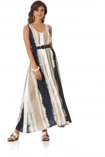 PATTERENED LONG DRESS WITH CONTRASTING TRIM