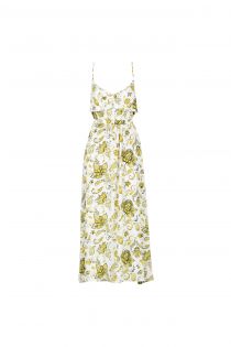 LONG PATTERNED RUCHED DRESS IN VISCOSE BLEND FABRIC