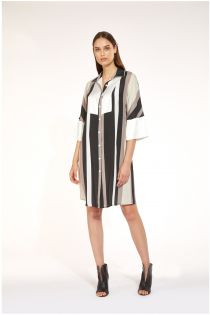 Chemisier dress with kimono sleeves made of printed viscose. The front yoke and sleeve hem are made of a contrasting colour fabric.