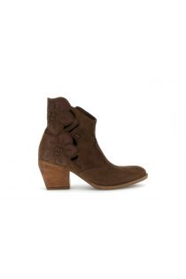 perforated suede ankle boots with flowers brown