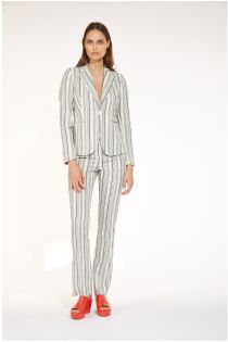 Pinstriped linen blend palazzo trousers with side pockets