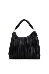 Hobo bag with pleated body and handle that create a delicate wave effect. logo pendant.