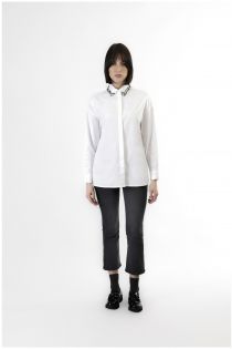 Long-sleeved shirt with hand-embroidered collar with burnished pearls. the model is made of cotton poplin and is characterized by its oversized fit with dropped shoulders for an even more comfortable fit. hidden button closure. to be combined with denim and worn with a blazer to create casual and more refined looks.