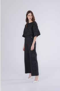 Women's cotton poplin trousers with an elastic waist straight leg and a broderie anglaise side band. lightweight and refined they combine comfort and style for elegant and versatile summer looks. the model is 171 cm tall and wears a size s. fit: regular.
