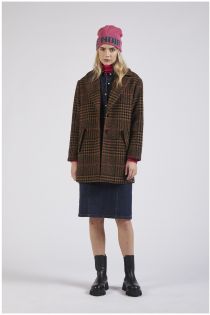 Single-breasted coat made of glen plaid fabric with a contrasting stripe.