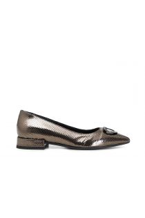 Slim shaped laminated printed leather ballet flats with metal accessory