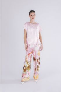 Elegant blouse with dropped sleeves and a refined boat neckline crafted from printed satin with an exclusive gradient pattern. flowing luminous lines make it ideal for feminine sophisticated and trendy looks. the model is 175 cm tall and wears a size s. fit: regular.