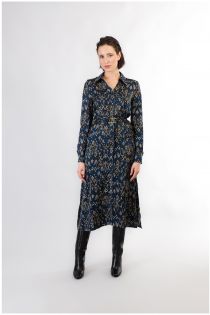 Shirt dress in printed viscose. the garment has long sleeves and side slits. front closure with visible buttons. its soft fit does not mark the silhouette. the waistline is outlined thanks to the fabric sash with cafènoir logo buckle.