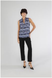 Sleeveless busa with drop on the front made of printed viscose marocaine. perfect to combine with coordinated trousers.