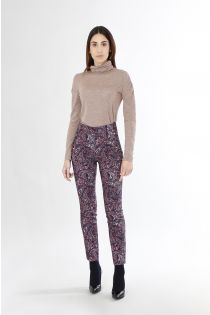 Comfortable printed super stretch stovepipe trousers. Refined rivets that mark and customise the pockets embellishing the top part.