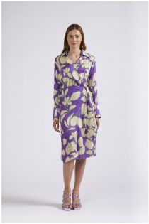 Elegant wraparound long-sleeved dress made of a lightweight printed viscose satin. v neck. perfect dress for ceremonies.