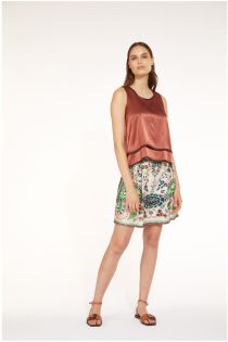 Printed viscose satin midi skirt. The print is a placed scarf pattern