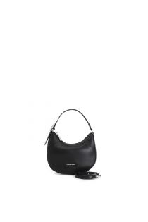puffy effect minibag with shoulder strap attachment and rhinestone buckle black