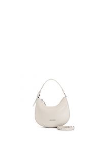 puffy effect minibag with shoulder strap attachment and rhinestone buckle ivory