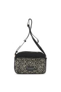 Quilted nylon camera bag with a flocked, fabric-effect print. Zip closure and adjustable shoulder strap. Compact and original design, perfect for every day.