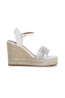 Raffia gilda model sandals with micro-rhinestone insert. cord wedge embellished with a micro-rhinestone strap.