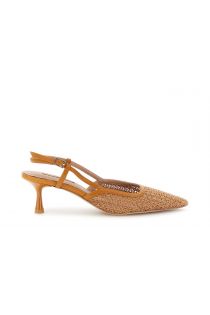 raffia-effect slingback pumps with spool heel tan