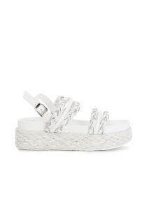 Colour block sandals in woven raffia with rhinestone insert. comfortable footbed and raffia-clad wedge.