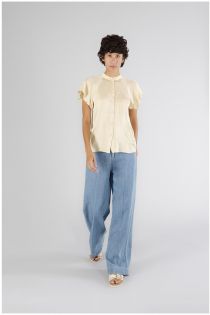 Blouse with raglan sleeves and mandarin collar. made of viscose satin. front closure with buttons. feminine and refined this shirt caresses the silhouette. perfect for completing elegant looks combined with collection items.