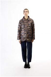 Reversible down jacket with one plain side and one printed side. pockets on both sides applied. perfect garment for season attack.