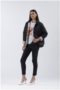 Long-sleeved diamond-quilted down jacket made of an impalpable nylon with a matt finish. the garment is reversible: on one side a solid colour and on the other an iconic floral print from the summer collection
