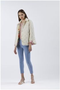 Long-sleeved diamond-quilted down jacket made of an impalpable nylon with a matt finish. the garment is reversible: on one side a solid colour and on the other an iconic floral print from the summer collection