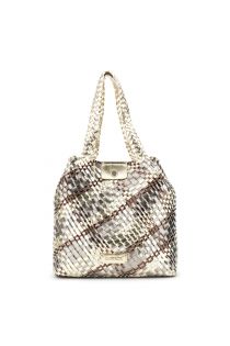 reversible woven shopping bag in multicolored metallic material bronze/platinum