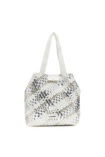 reversible woven shopping bag in multicolored metallic material silver/white