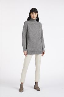Wide rib knit sweater with portrait collar