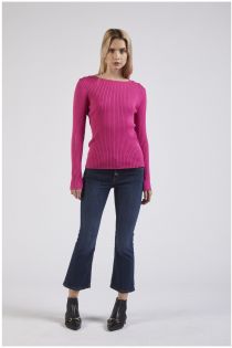 Crew-neck sweater with long sleeves made of a viscose yarn with rib knitting. customised shoulder plates.