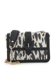Rigid faux leather shoulder bag with flap. Chain shoulder strap with shoulder pad for elegant and comfortable fit.