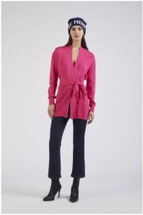 Long-sleeved robe-type cardigan made with viscose yarn.