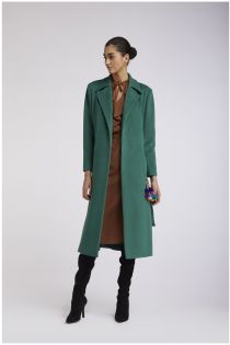 A robe-type coat made with poly-viscose cloth for an extremely trendy look.