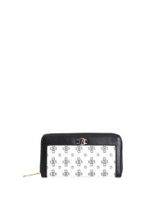 Round zip wallet in monogram printed saffiano metal accessory with logo contrasting frame.