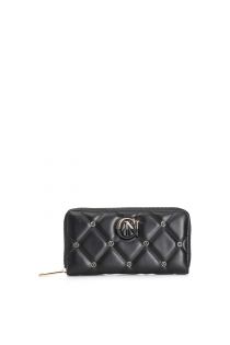 Large women's wallet with round zip and colored rivet applications and two-tone logo
