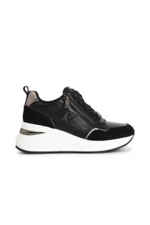 Women's running shoes in coated leather with suede inserts and ornamental side zip. internal footbed.