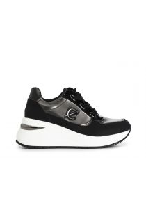 Laced women's running shoes in nylon and coated leather. internal footbed.