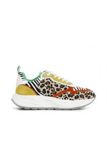 Lace-up running shoes with multi-animal appliqués in suede. side embossed logo with cafènoir monogram. rubber sole characterised by an interplay of hollows that make the shoe unique.