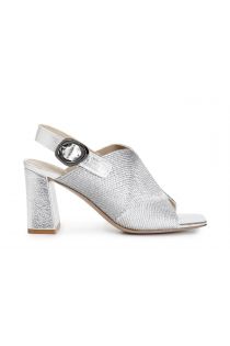 sabot sandals with back lace and cord embroidery silver