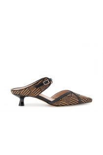 sabot with raffia and braid effect upper black/tan