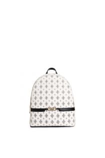Double zip backpack in saffiano with monogram print contrasting details golden metal logo and zip pocket on the back for impeccable functionality and style.