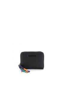 Saffiano-effect zip-around wallet with matching logo and multicolor charms.