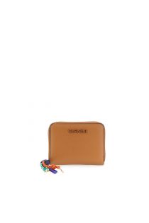 Saffiano-effect zip-around wallet with matching logo and multicolor charms.