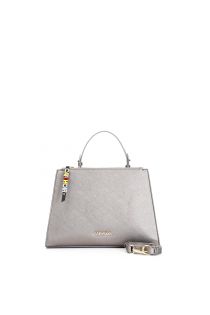Shopper with a rigid saffiano structure. puller with personalised coloured lettering. double-zip bag with several compartments. single handle and adjustable shoulder strap.