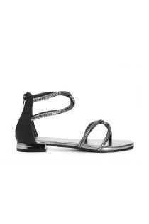 Sandals with heat-sealed rhinestones. patch and zip on the back. lining and insole are in leather. the heel is 1.6 cm.
