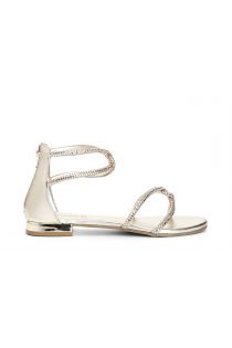 Sandals with heat-sealed rhinestones. patch and zip on the back. lining and insole are in leather. the heel is 1.6 cm.