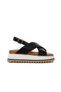 Sandals with low wedge and crossed bands