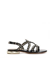sandals with multiple straps and rhinestones black
