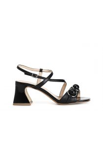 Sandals with napa leather band and three-ball decor accessory. a shoe that can be worn all day long thanks to its 55 mm-high broad-base heel and comfortable base.